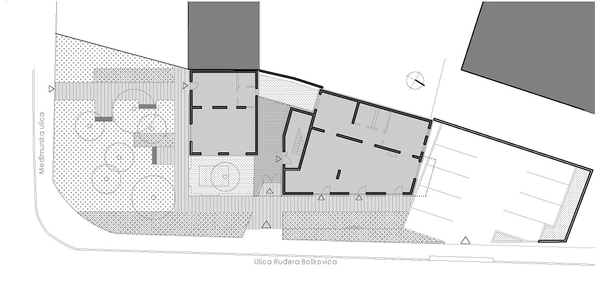Parcela je na prometnom gradskom raskrižju, uz rub povijesne jezgre grada Varaždina. Raskrižje je točka od koje se pružaju lijepe vizure na povijesnu jezgru. Parcela je nepravilnog, izduženog oblika, dužom stranom paralelna sa Ulicom Ruđera Boškovića. Zbog općeg lošeg građevinskog stanja, zatečene građevine na lokaciji, nisu primjerene za korištenje te se u potpunosti razgrađuju.